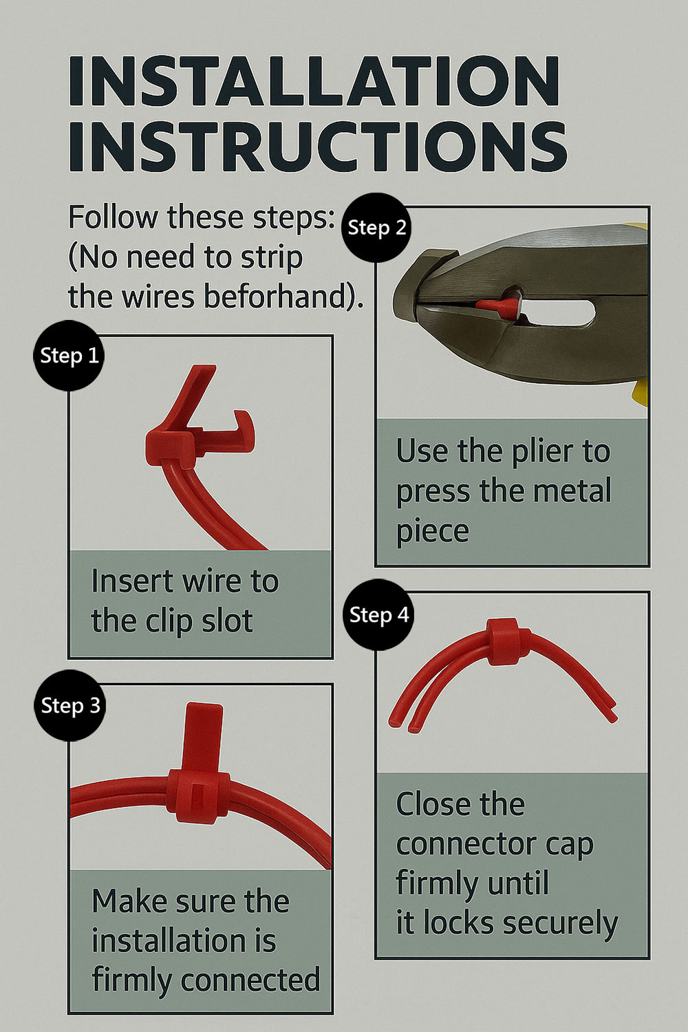 Why Quick Splice?The UTA Quick Splice Connector is a fast, tool-free soluton for securely connectng two wires without stripping. Designed for automotive wire harnesses, afermarket electronics, and lightng systems, this connector is ideal for applications requiring speed, reliability, and ease of use. Made from high-quality copper and flame-retardant plastc, our quick splice ensures stable conductvity and long-lastng performance even in harsh environments. Key Features: